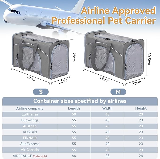 - Airline Approved: Designed to fit under most seats while keeping your pet cozy and secure.