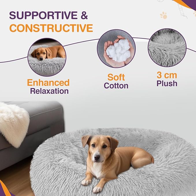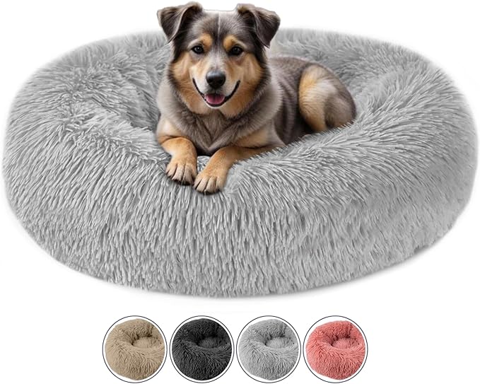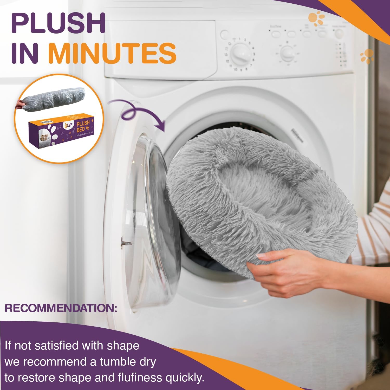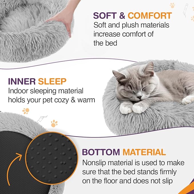 ELYF Plush Donut Pet Bed - Calming Cushion for Cats & Small Dogs - Self-Warming, Waterproof Base, Anti-slip, Machine Washable