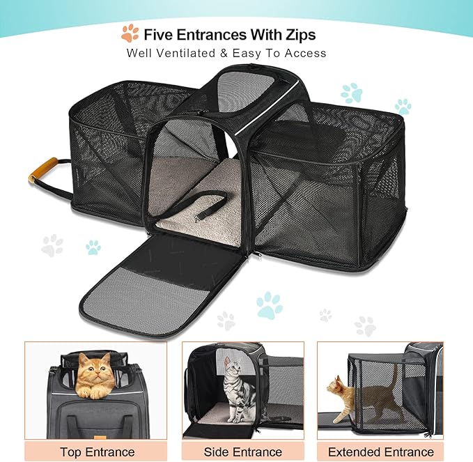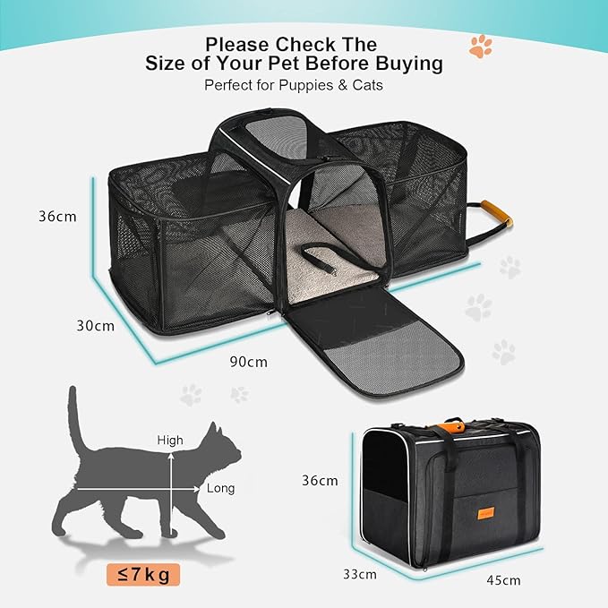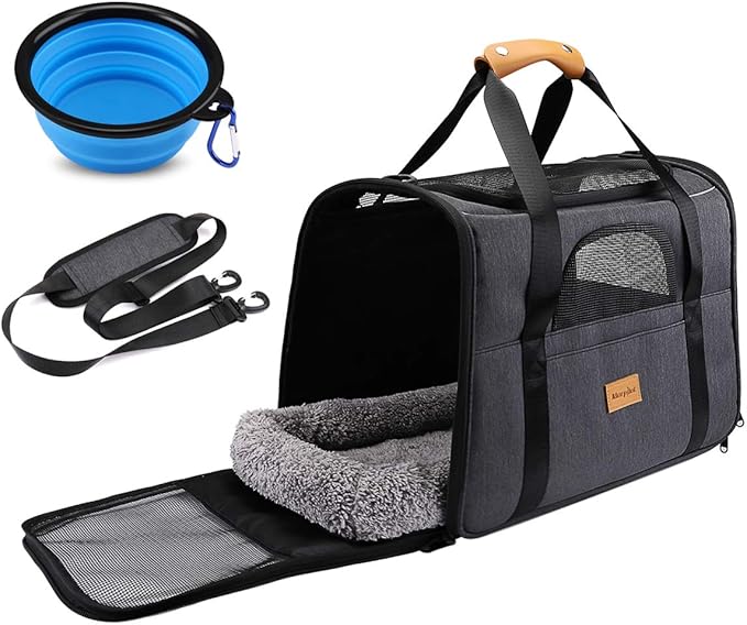 Morpilot Expandable Airline Pet Carrier Soft-Sided Travel Bag for Cats & Small Dogs, Foldable & Breathable with Safety Leash (Multiple Sizes & Colours)