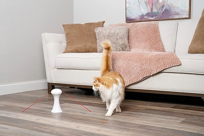 Meet the PetSafe Multi-Laser Cat Toy: a clean-cut interactive laser that spins randomly to give your cat the thrill of the chase — without wrecking your aesthetic.