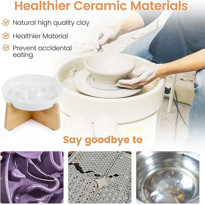 Introducing the PETTOM Ceramic Slow Feeder Cat Bowl with Bamboo Stand β a stylish, health-conscious solution for the sophisticated snacker in your life.