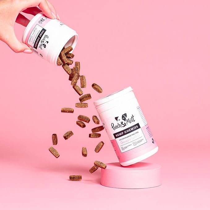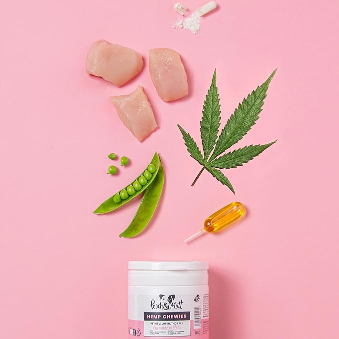 Meet Pooch & Mutt Calming Chews: Chicken-flavoured bites packed with natural goodness to soothe nerves, support joints, and promote chill vibes.