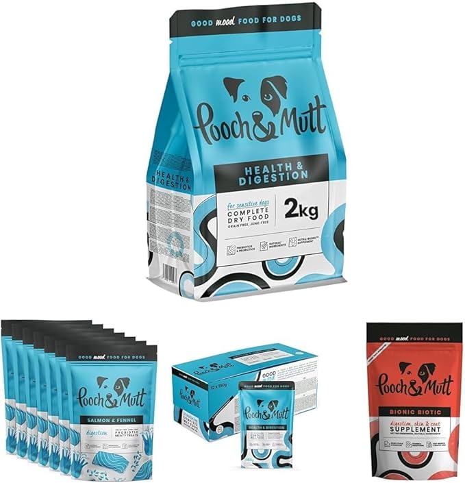 Pooch & Mutt Health & Digestion Dog Food Grain-Free Salmon & Sweet Potato Kibble for Sensitive Stomachs, 2kg