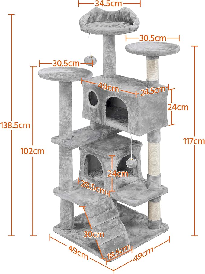 Yaheetech Cat Tree Tower - 138.5cm Multi-Level Climbing House with Condos, Ladder & Scratch Posts Activity Centre for Kittens & Small Cats (Multiple Colours & Sizes)