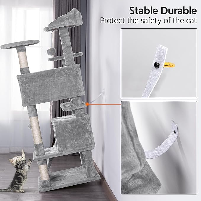 - Multi-Level Fun: Includes platforms, a ladder, perches, and 2 condos for endless climbing, scratching, and lounging.