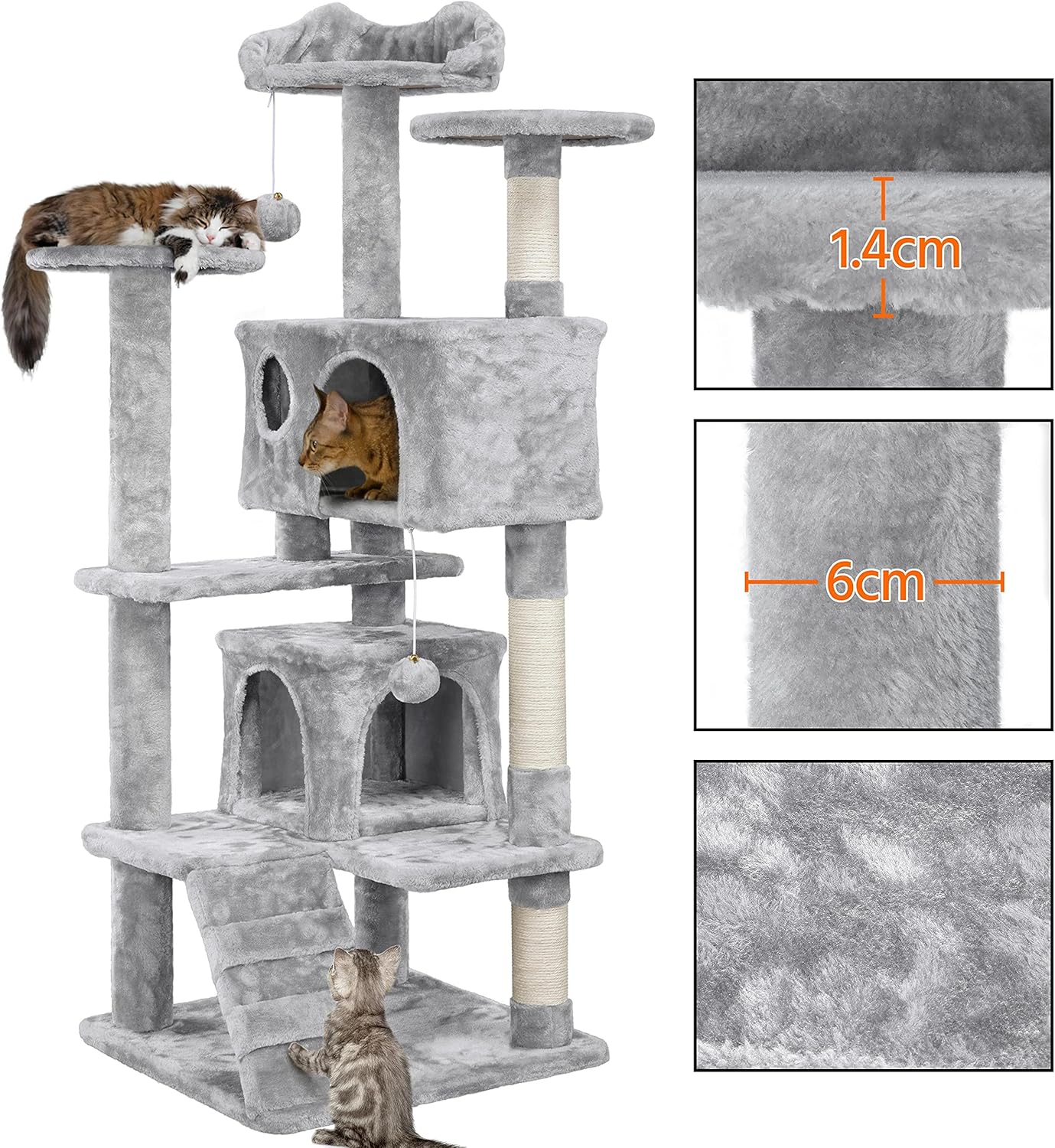 - Removable Dangling Balls: Bonus toys hang from the condo tops for extra excitement β replaceable with your cat's favourites.